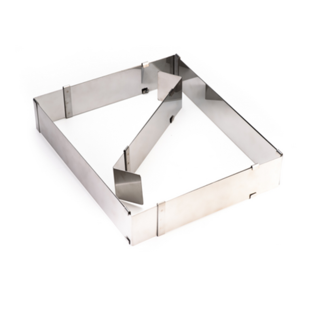 93369-Molde rectangular expansible-Min. -( Largo: 27 cm – Ancho: 17,5 cm ) Max. ( Largo: 52 cm – Ancho: 34 cm) Altura: 5 cm – AISI 430