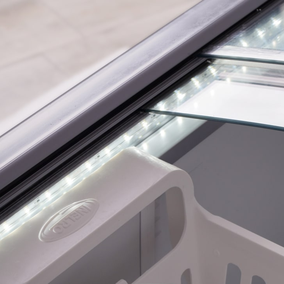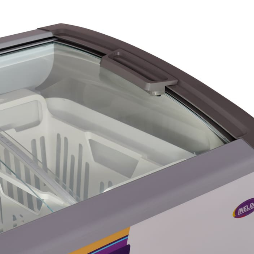 Nuevo Freezer Exhibidor Horizontal con Tapa de Vidrio Curvo. Plano Inclinado. Ruedas Dobles Giratorias de Alta Resistencia.