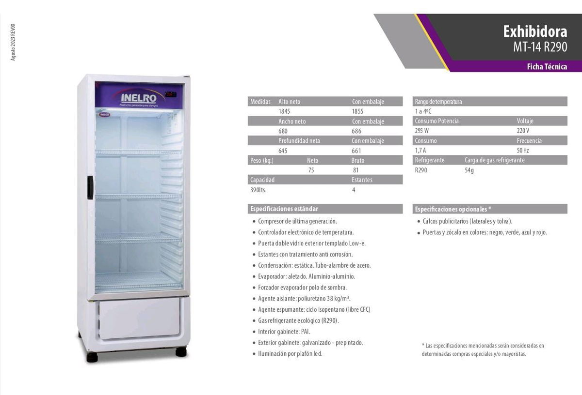 Exhibidora Vertical – Sin Cenefa, Condensación Estática, Cuatros Estantes Móviles, Tolva Inyectada, Nuevo Zócalo Inyectado.