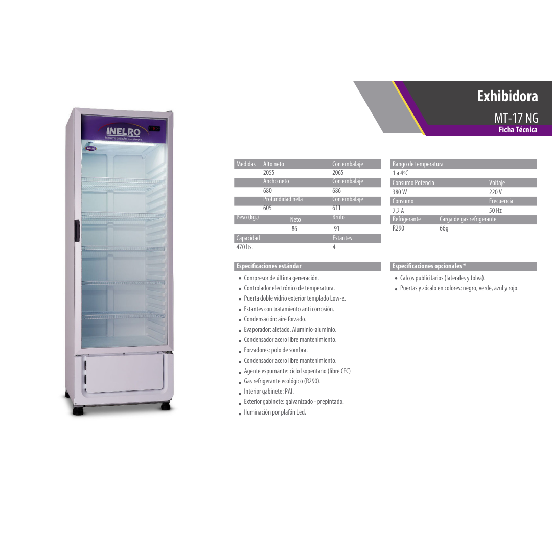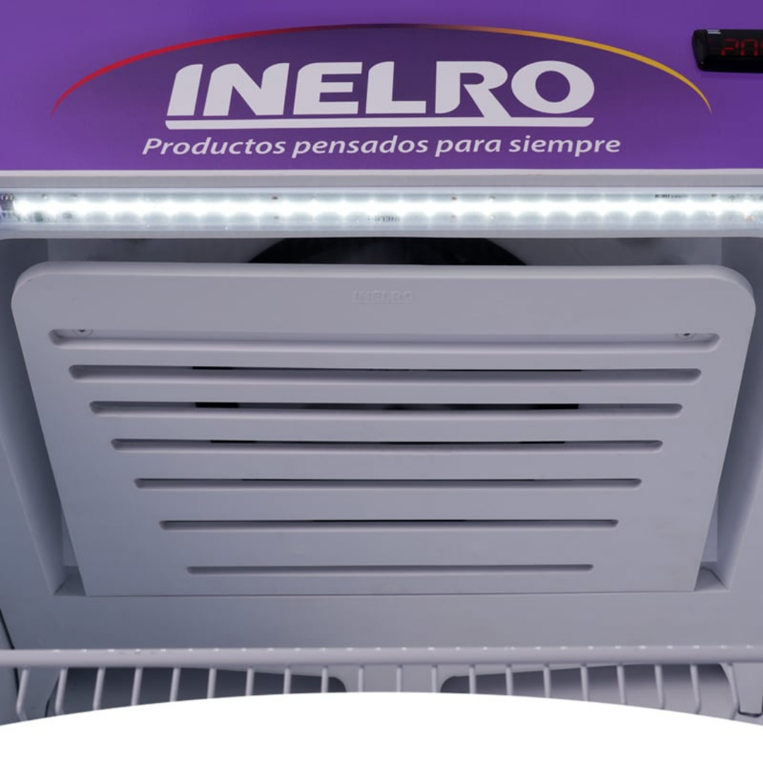 Exhibidora Vertical – Sin Cenefa, Condensación Forzada, Cuatros Estantes Móviles, Tolva Inyectada, Nuevo Zócalo Inyectado.